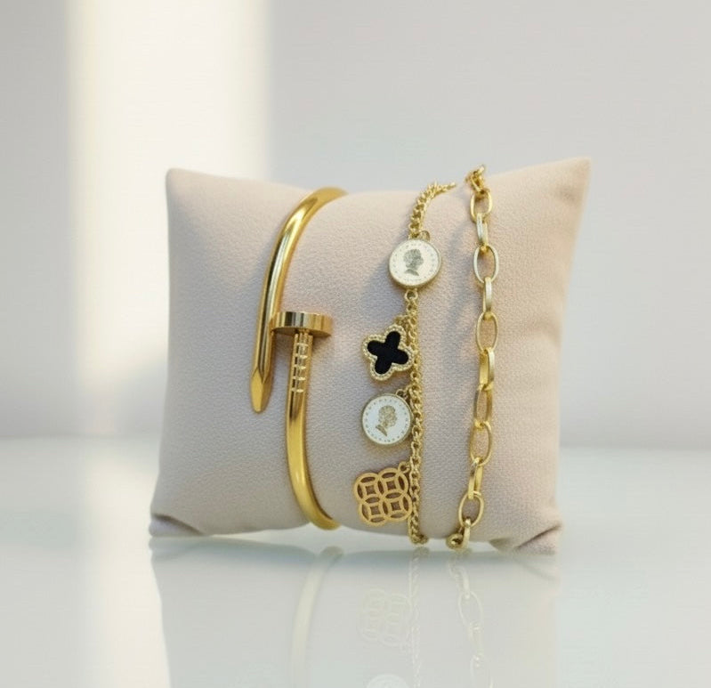 Crafted from premium stainless steel — tarnish-free, water-resistant, and made to last. This piece combines durability with a luxurious shine, making it the perfect everyday statement accessory.